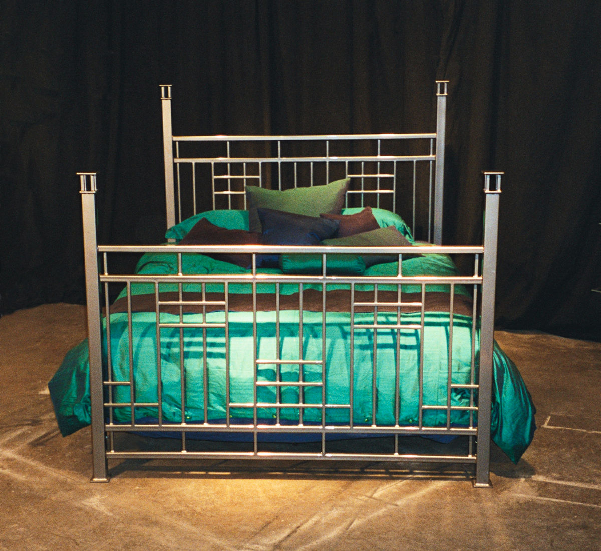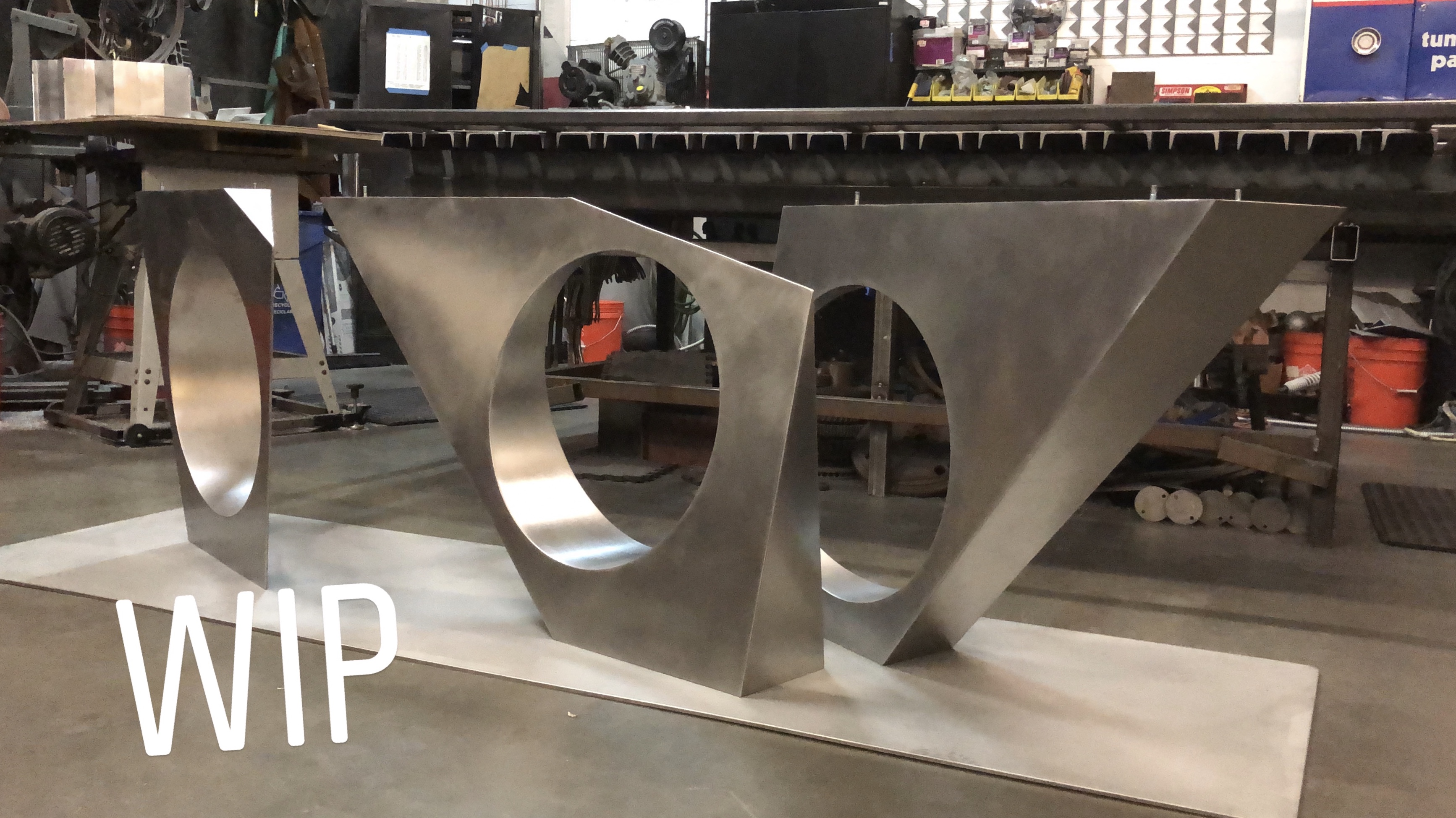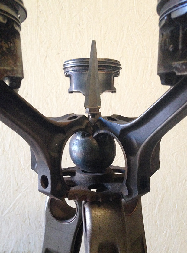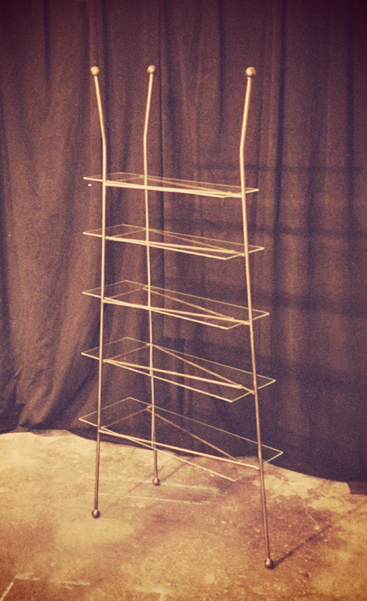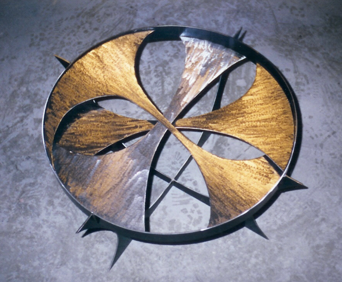 The “George” dinning table was inspired by a sculpture installation of mine on the property that consisted of two of these spikes in rusted steel. The table uses sections of the spike design as the body. All constructed in stainless steel with a granite top. Table top measures 3′ x 9′